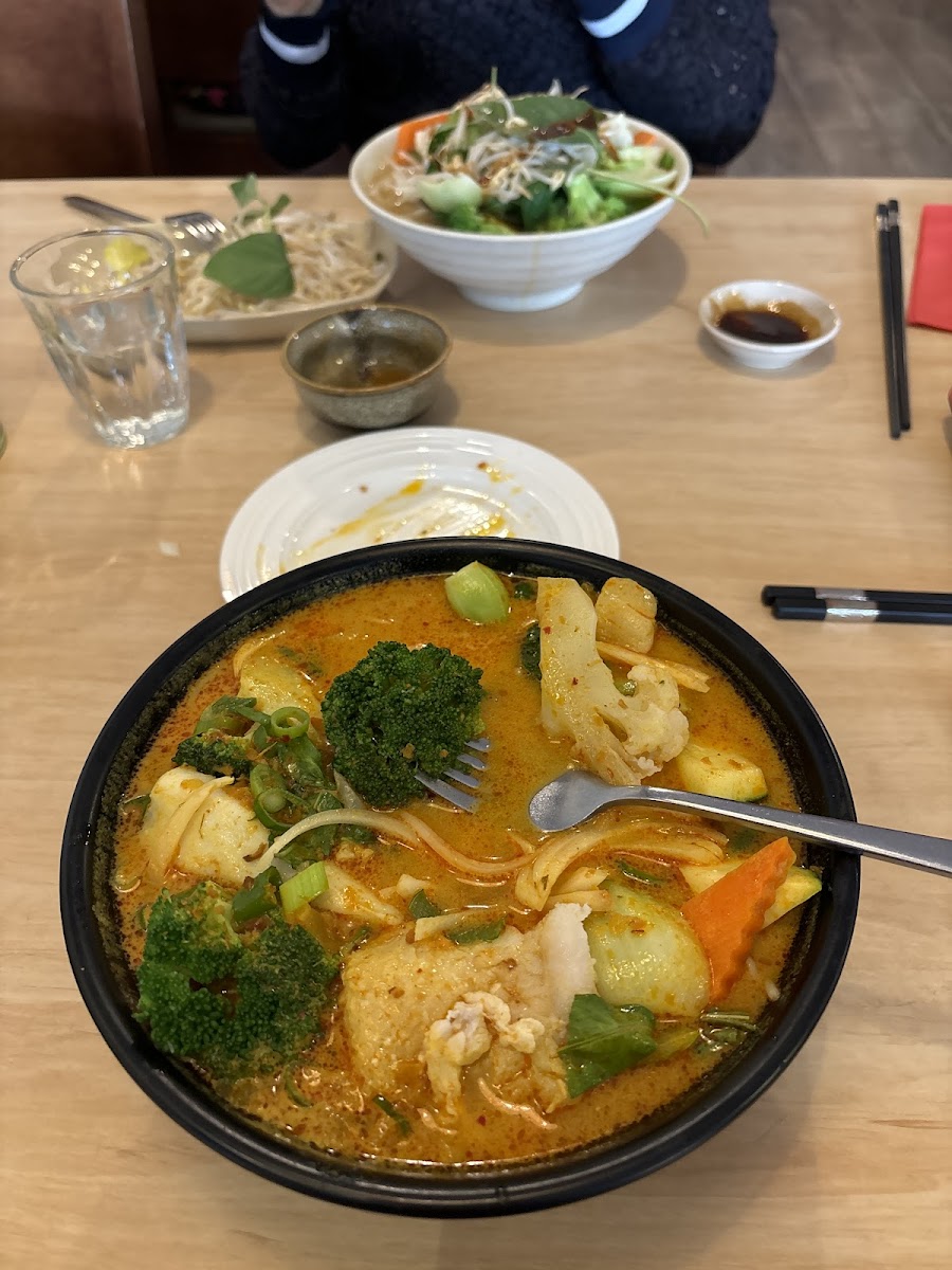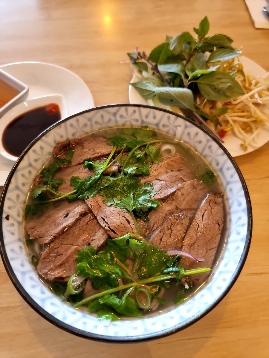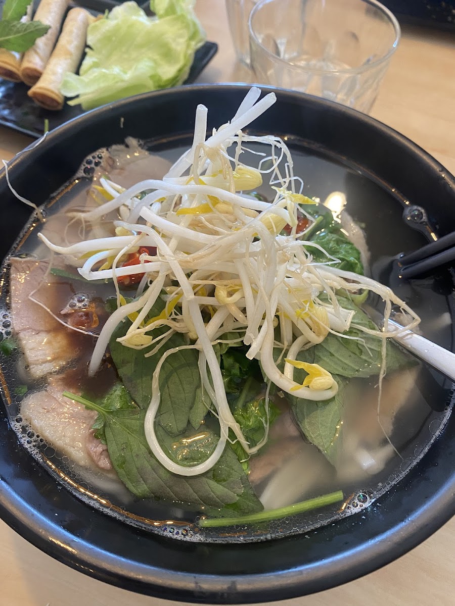 We both had Phò, chicken and rare beef, and the tofu. Excellent. Service was efficient and friendly